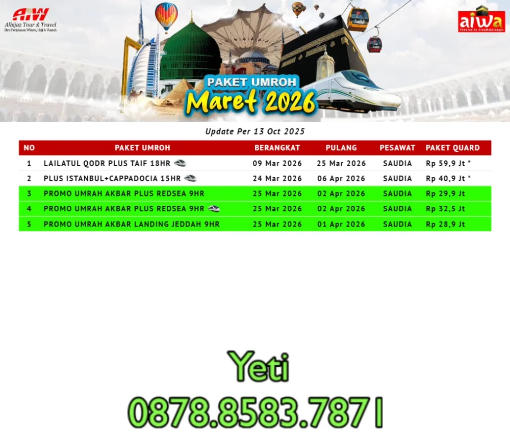 Siap untuk umroh di bulan Maret 2026 bersama Alhijaz? Jangan sampai kehabisan dan lewatkan kesempatan ini yaa! Yuk rencanakan keberangkatan umroh bersama keluarga